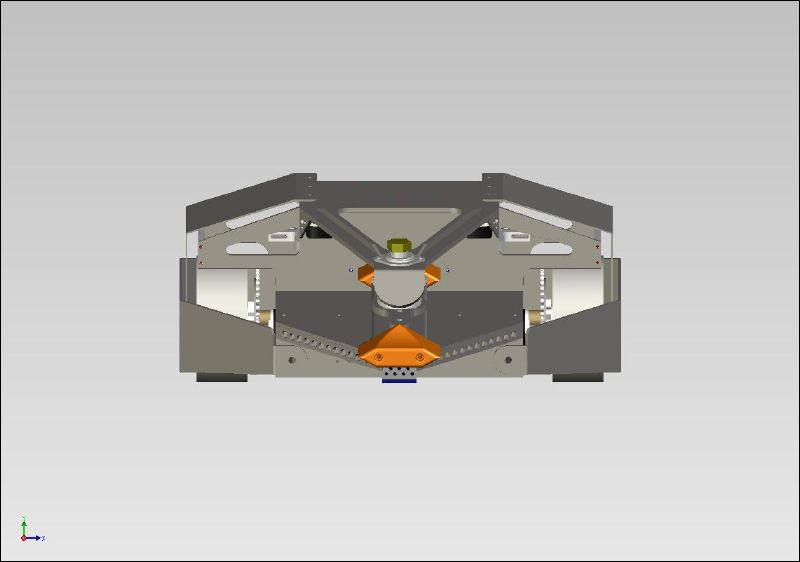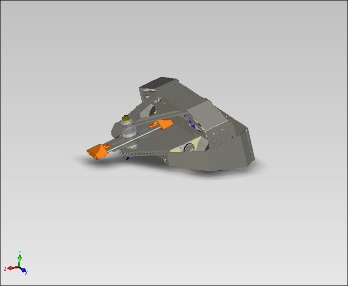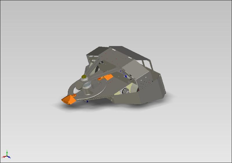 Eugene is the first robot designed and built by Team Moon Robotics that is 100% computer designed. Ordinarily, we'd do several paper studies, build 1/3 scale prototypes and wooden models of a new bot before "going to metal", however in the case of Eugene the complete design was done using SolidWorks and the bot went straight from that design to the final product.