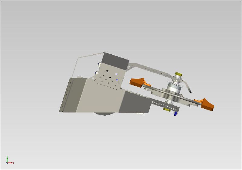And finally, here's a side view of Eugene showing the angle that the blade is held at. By changing the front drag plate and the wheel height we can adjust both the height of the robot and the angle of the blade. |