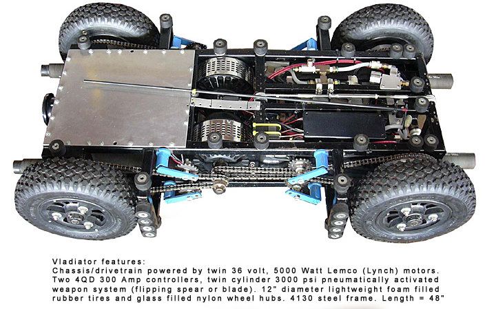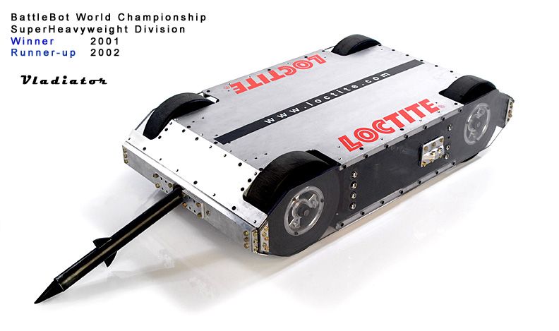 Vladiator is Team Moon Robotics' newest Super Heavyweight. Vladiator was once one of the finest robots in the world, winning the BattleBots Super Heavyweight Championship in 2001 and placing Runner Up in 2002. We've taken the basic design of Vladiator and updated almost every major system of the robot to bring it back and hopefully remain just as competitive as the day it retired almost 5 years ago.